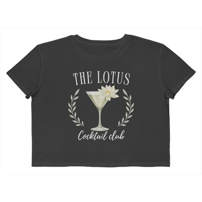 Rerun Island Women's Lotus Cocktail Club Luxury Paradise Drama Short Sleeve Graphic Cotton Cropped Loose T-shirt