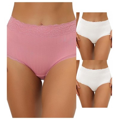 Allegra K Women's High-Waisted Tummy Control Comfortable Lace Trim Ribbed Briefs 3 Packs