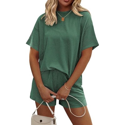 Ekouaer Womens Pajama Sets 2 Piece Lounge Sets Comfy Short Sleeve Tops and Shorts Cute Pjs Outfits Set