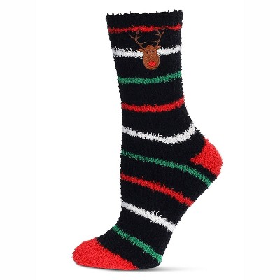 Memoi Women's Striped Reindeer Embroidery Cozy Crew Socks Black 9-11