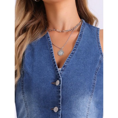 womens crewneck button down vest