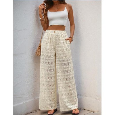 Women's Casual Wide Leg Button Front Trousers Straight Loose Long High Waisted Pants White XL