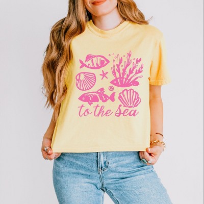 Beach Elements Outline - Women's Boxy Crop Top Graphic T-Shirt