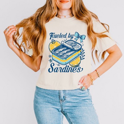 Sun and Waves Sketch - Women's Boxy Crop Top Graphic T-Shirt