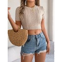 Rebel 89 Women's White Crew Neck Short Sleeve Crop Top