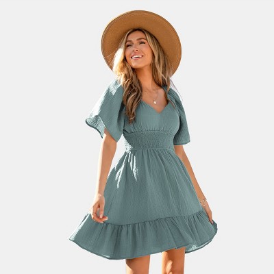 Women's Chic Plaid Tiered Dress with Ruffled Hem - Cupshe-S-Green