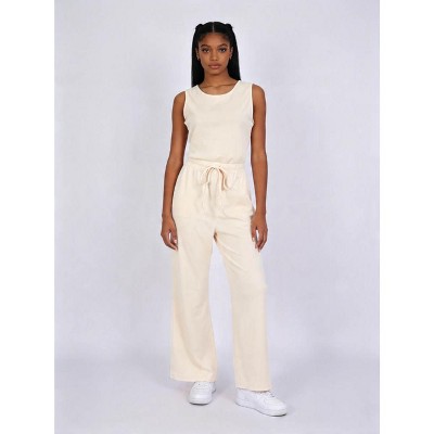 Cherie Code Women's Sleeveless Wide Leg Jumpsuit – Soft Relaxed Fit Lounge Jumpsuit with Elastic Waist & Drawstring