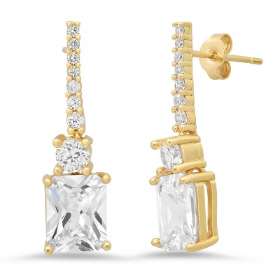 Steeltime Ladies 18k gold plated brass and simulated emerald shape diamonds dangle drop earrings