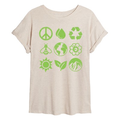 Women's - Instant Message - Earth Day Grid Oversized Graphic T-Shirt