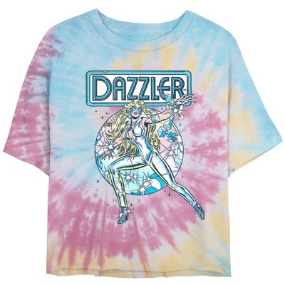 Juniors Womens' Marvel Dazzler Retro Light Beams Shimmer Cropped T-Shirt