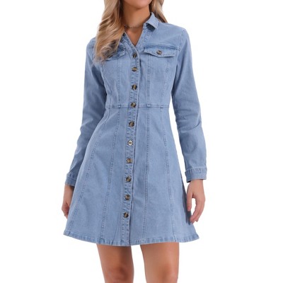 Agnes Orinda Women's Plus Size Long Sleeves Belted Midi Denim T-Shirt Dresses