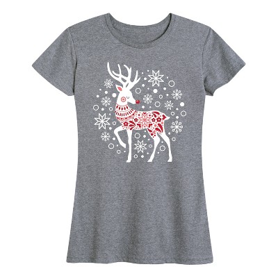 Women's - Instant Message - Scandinavian Christmas Deer Short Sleeve Graphic T-Shirt