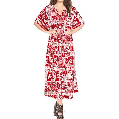 LA LEELA Women's House Daily Routine Evening Wear Holiday Casual Loungewear Loose Slit Dress Caftan Long Boho Night Shirts for Women 2X-3X Red, Turtle