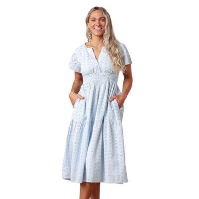 Hope & Henry Women's Bell Sleeve Tiered Eyelet Dress