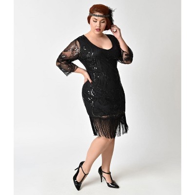 Unique Vintage Women's Plus Beaded & Sequin Margaux Fringe Flapper Dress