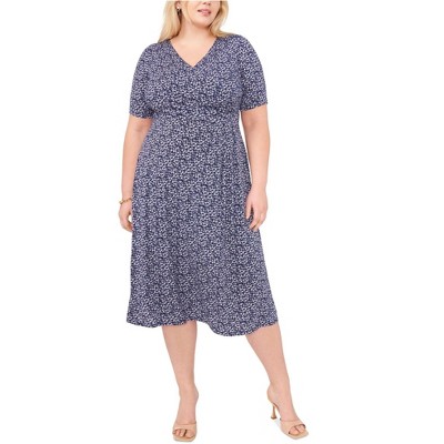 Plus Size Women's Pleated Midi Dress with Belt Flowy Casual Elegant Knee Length Dress for Work Summer