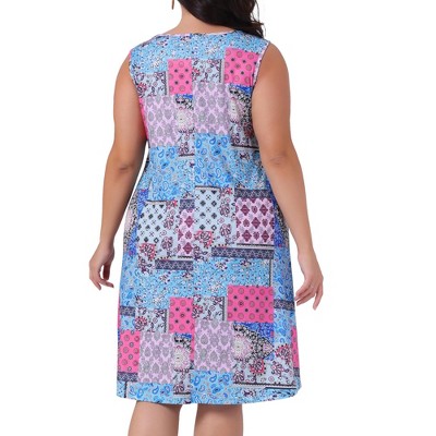Women's Plus Size Contrast Square Neck Sleeveless Side Slit Bodycon Knit Summer Long Tank Dresses - Agnes Orinda