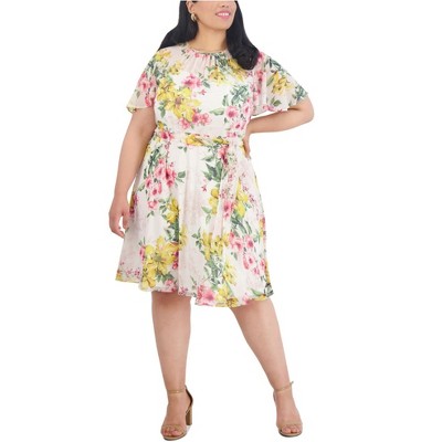 Jessica Howard Womens Belted Tie Waist Floral Midi Dress