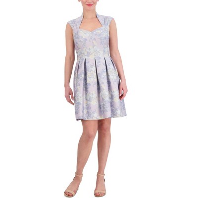 Coolmee Women's Plus Size Casual Dresses Crew Neck Short Sleeve Pleated Hem Dresses Multicolor Printed Summer Flowy A Line Midi Dresses 4XL Blue