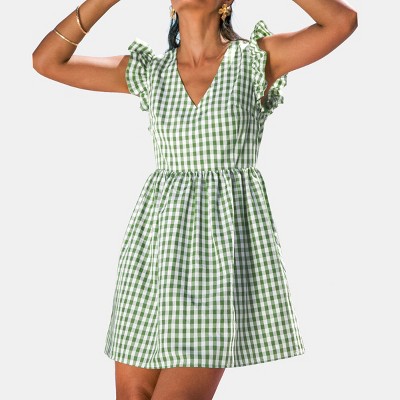 Cupshe Women's Gingham Puff Sleeve Tie Back Dress