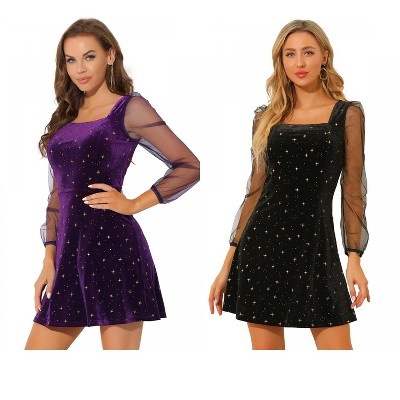 Women's Dress Deep V-Neck Long Sleeve Waist Tie Ruffle Mini Swing Skater Dresses
