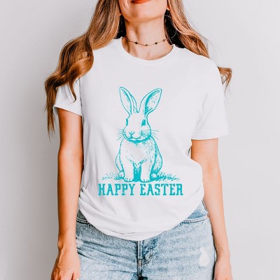Simply Sage Market Happy Easter Bunny Outline Short Sleeve Tee