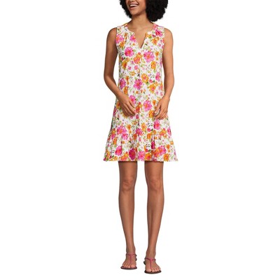 Lands' End Women's Sleeveless Cotton Jersey Notch Neck Flounce Dress