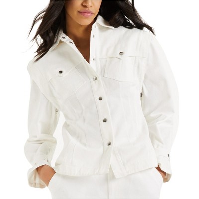 I.N.C International Concepts Womens Denim Jean Jacket, white, X-Small