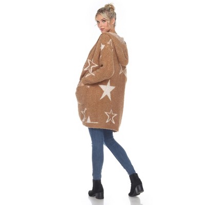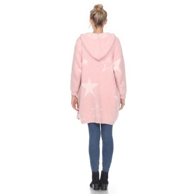 Maternity Hooded Open Front High Pile Fleece Coat -White Mark