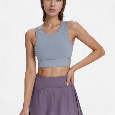 Anna-Kaci Active Women's High Impact Solid Color Ribbed Crop Soft Tank Top for Workout Wear