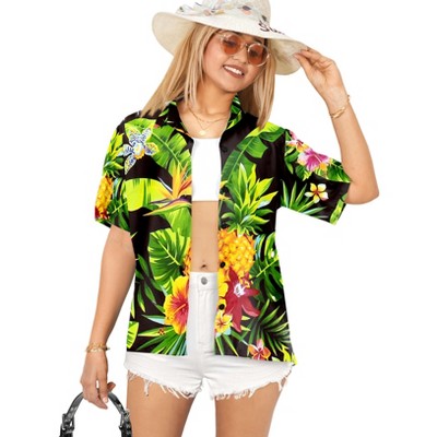 LA LEELA Hawaiian Shirts Womens Casual Summer Beach Party Short Sleeve Tropical Vacation Tops Blouse Shirt Colorful Dress Shirts for Women