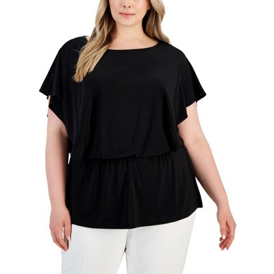 Anne Klein Womens Gathered Waist Peplum Blouse
