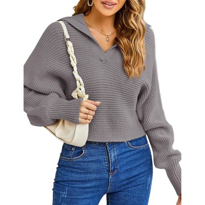 Coolmee Womens Hoodies Oversized V Neck Sweatshirts Long Sleeve Pullover Casual Fall Teen Girls Preppy Clothes