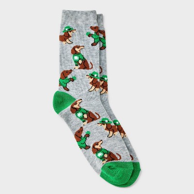 Women's Lucky Doxie St. Patrick's Day Crew Socks - Gray 4-10