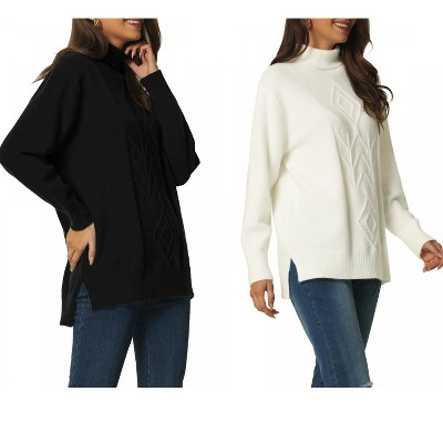 INSPIRE CHIC Women's Solid Fall Winter Turtleneck Long Sleeve Spilt Hem Tunic Pullover Sweater 2 Packs