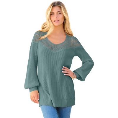 Roaman's Plus Size Crochet Pullover Sweater With Sweetheart Neckline