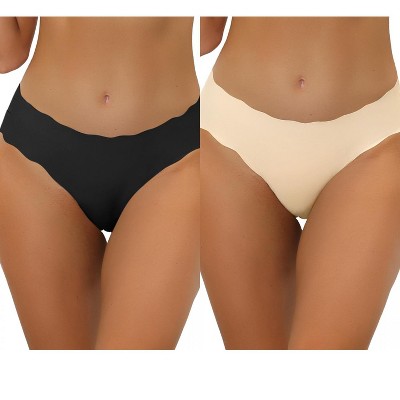 Allegra K Women's Unlined No-Show Stretch Laser Cut Solid Invisible Brief 2 Packs