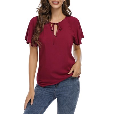 Calvin Klein Womens Logo Split Neck Pullover Blouse
