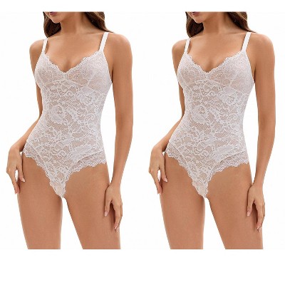 INSPIRE CHIC 2 Pcs Women's Lace Square Neck Long Sleeves Tummy Control Body Shapers