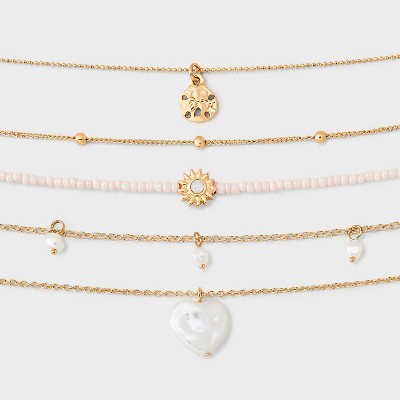 Summit Adventure Gold Layered Necklace Set, Dainty Stackable Seashell & Pearl Choker for Women, Waterproof Jewelry Gift