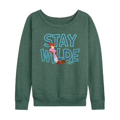 Women's - Zootopia - Nick The Fox Stay Wilde Lightweight French Terry Wide Neck Long Sleeve Graphic Shirt