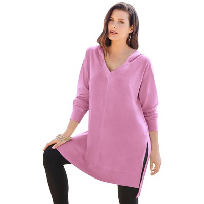 Roaman's Comfort+ Fleece V Neck Hooded Sweatshirt