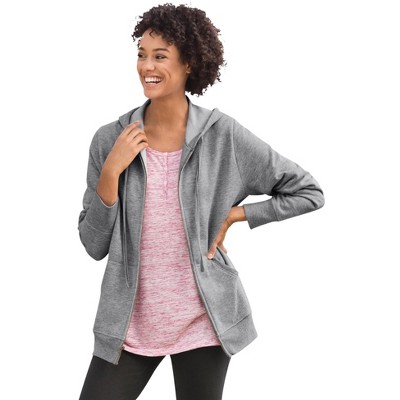 Attraco Women's Oversized Hooded Sweatshirt Solid Color Full Zip Long Sleeve Pocket Sweatshirt
