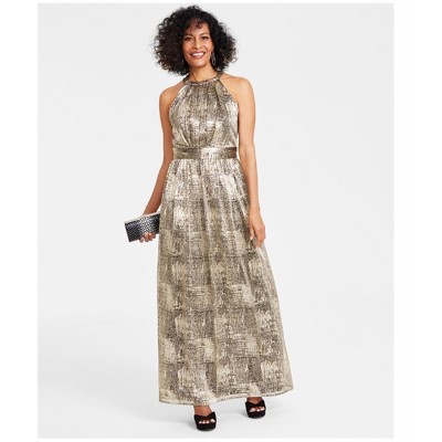 Slickblue Valentine's Day Metallic Halter Dress - Rushed Sides, Stretch Foil, Side Cutout, Black, Sizes S-L
