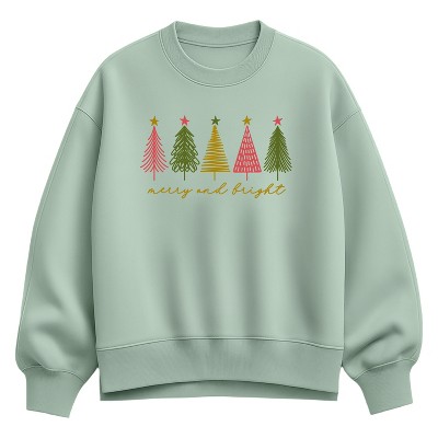 Women's - Instant Message - Merry And Bright Christmas Trees Oversized Fleece Crew Sweatshirt