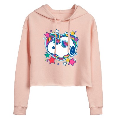Women's - Peanuts - Snoopy Pastel Rainbow Heart Cropped Graphic Hoodie