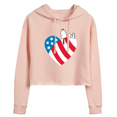 Women's - Peanuts - Snoopy On Flag Heart Cropped Graphic Hoodie