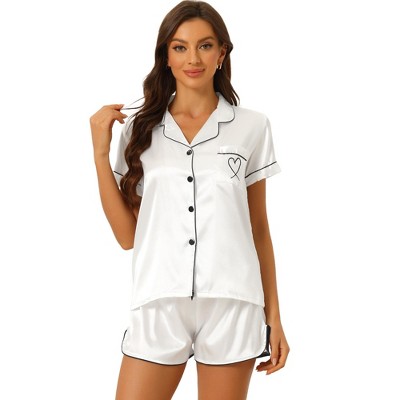 cheibear Women's Silky Satin Loungewear Button Down Shirt with Shorts Sleepwear Pajama Sets