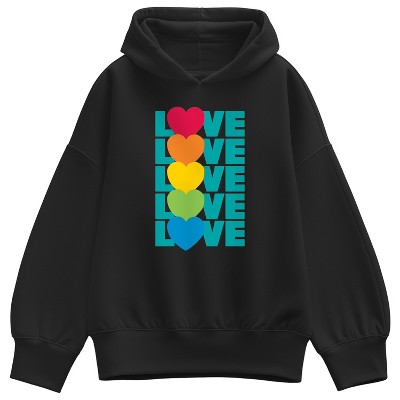 Women's - Instant Message - Love Hearts Stacked Oversized Fleece Hoodie Sweatshirt