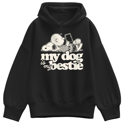 Women's - Peanuts - My Dog Is My Bestie Oversized Fleece Hoodie Sweatshirt